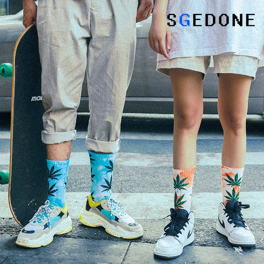 Unisex Tie-Dye Canna-Leaf Tube Skate Socks -1 pair
