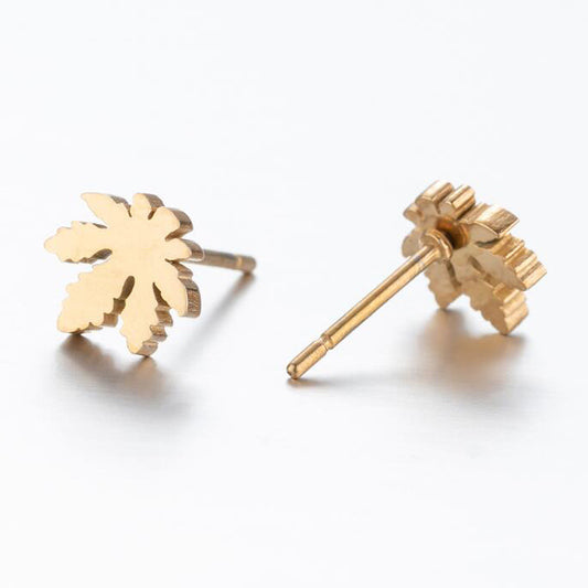Unisex Petite Stainless Steel Canna-leaf Earrings in Various Colors